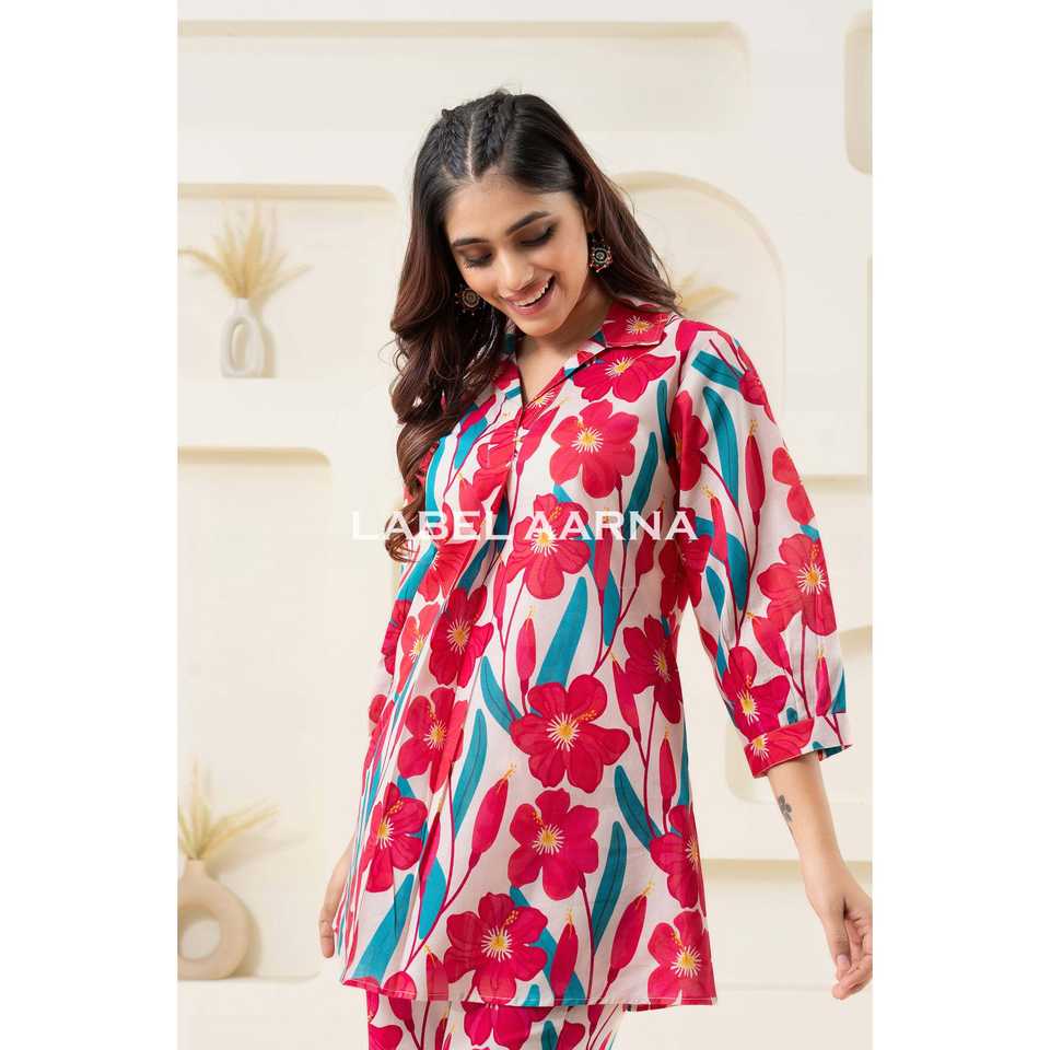 ชุดคอตตอนแท้สีชมพูทรงบานชุด2ชิ้นสำหรับฤดูร้อนความยาวเหนือเข่ามีขนาด XS และ XXS