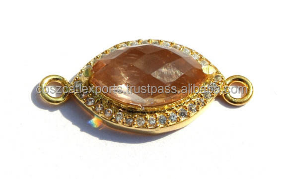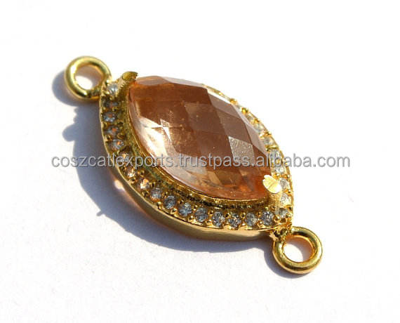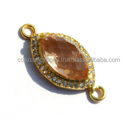 เครื่องประดับพลอยควอตซ์สีชมพูพร้อมเพทายโรเดียมและชุบทองตัวเชื่อมต่อแบบประกันตัวคู่สำหรับงานปาร์ตี้