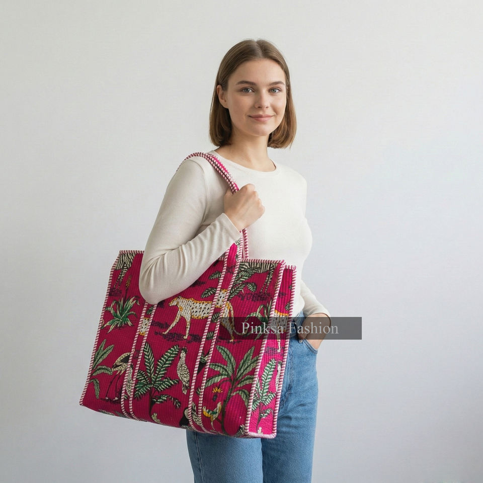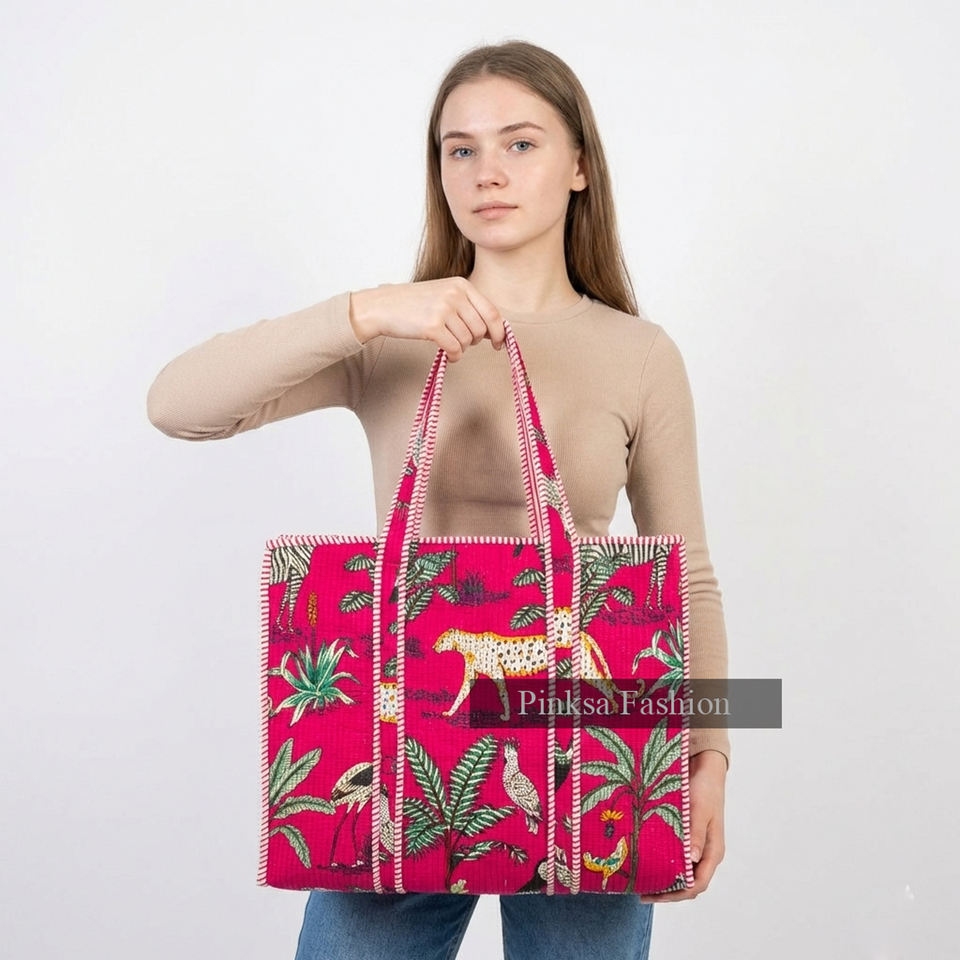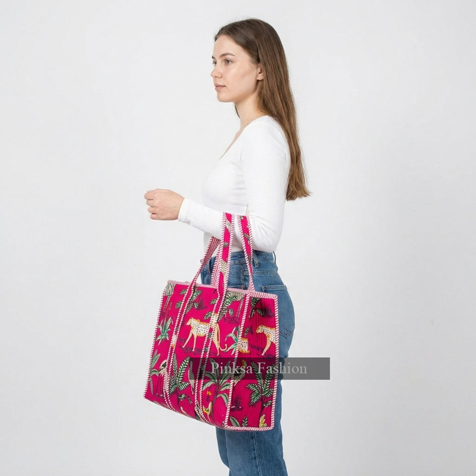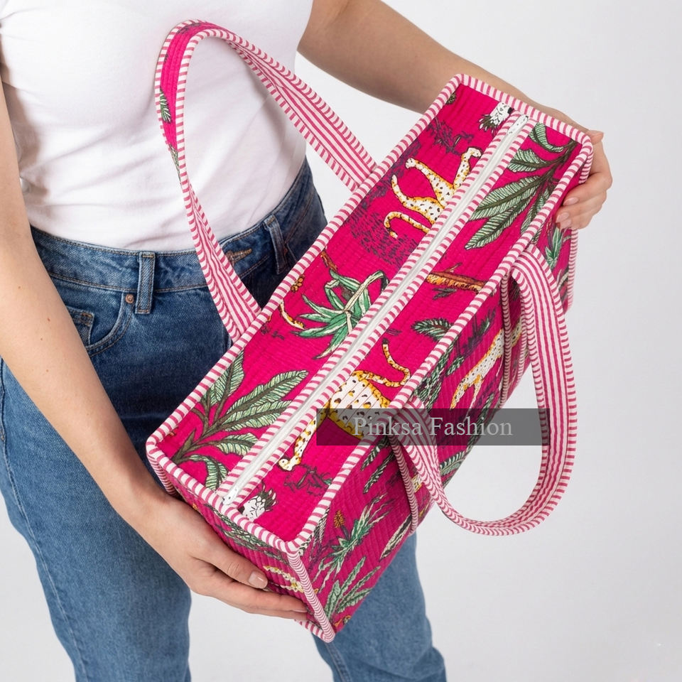 กระเป๋าโท้ทผ้าฝ้ายเนื้อนุ่มน้ำหนักเบา ลายเสือดาว สำหรับเดินทาง จุของได้เยอะ สะพายไหล่ สไตล์อินเดียโบโฮ