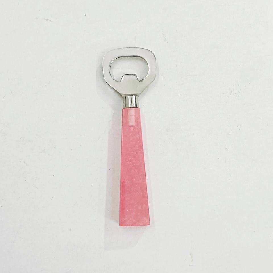 ที่เปิดขวดสแตนเลสด้ามจับทำจากเรซินสีชมพูมีดีไซน์ขัดเงาด้วยมือสำหรับบาร์ร้านอาหารบ้านสำนักงาน