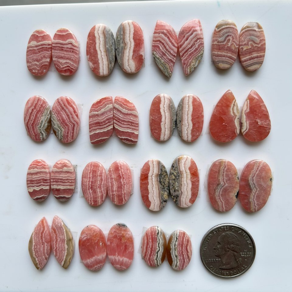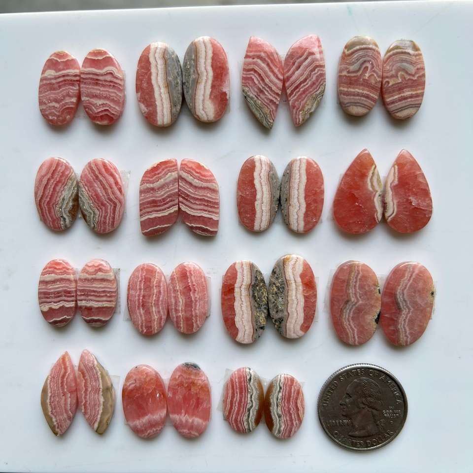 พลอยโรโดโครไซต์สีชมพูคู่อัญมณีหลวมขนาดและรูปร่างดีที่สุดสำหรับการทำเครื่องประดับ