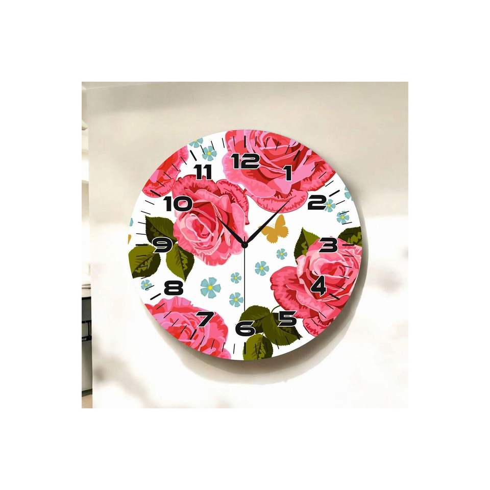 นาฬิกาแขวนผนังไม้ลายดอกกุหลาบสีชมพูขนาด50ซม. เงียบหมายเลขโต๊ะของขวัญลายดอกไม้สีสันสดใสสำหรับตกแต่งบ้าน