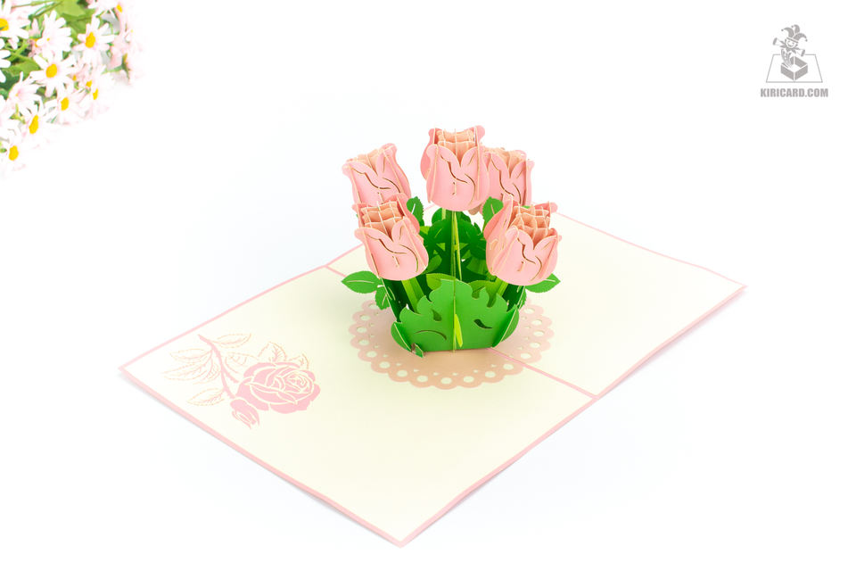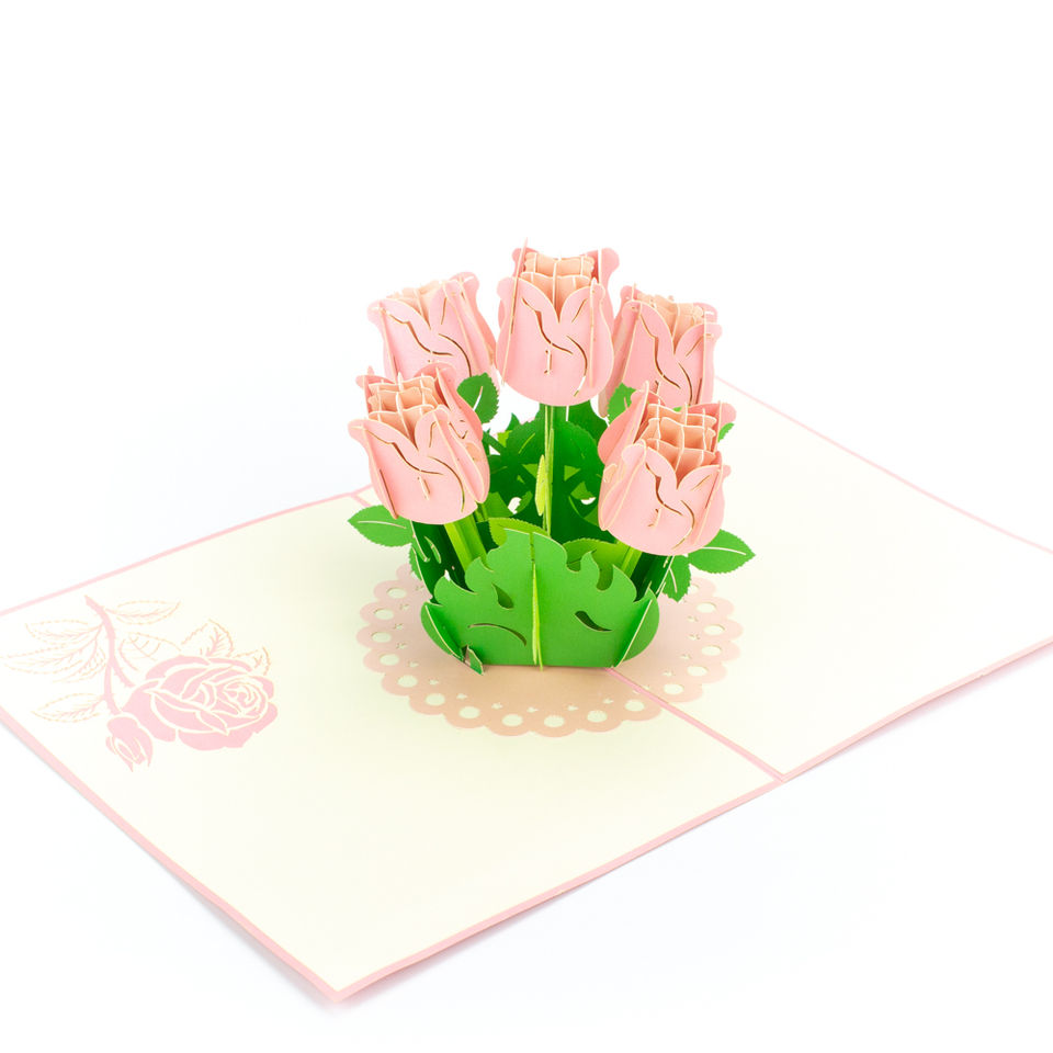 ชื่อ:การ์ดป๊อปอัพดอกกุหลาบสีชมพู