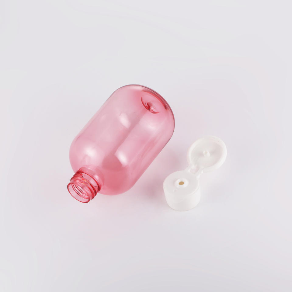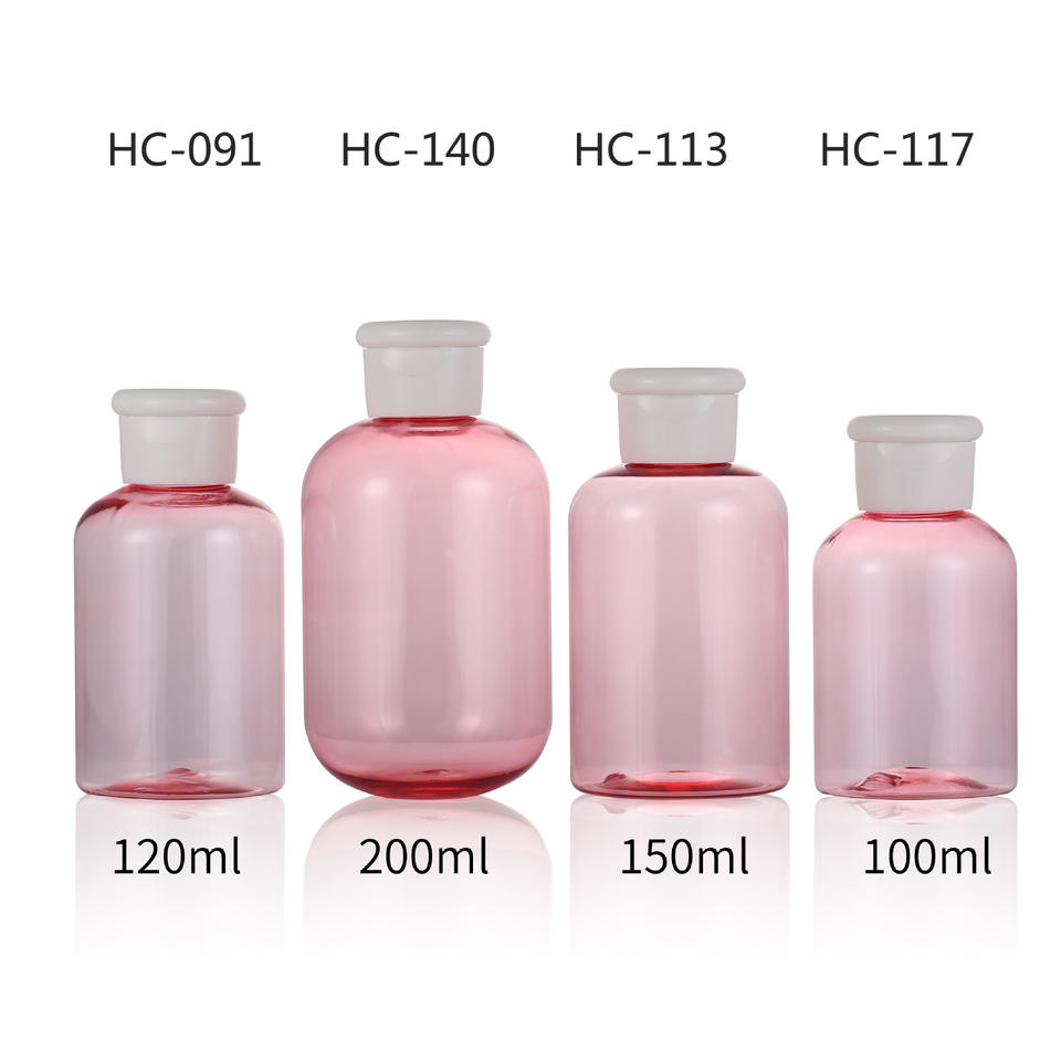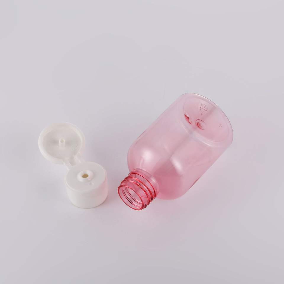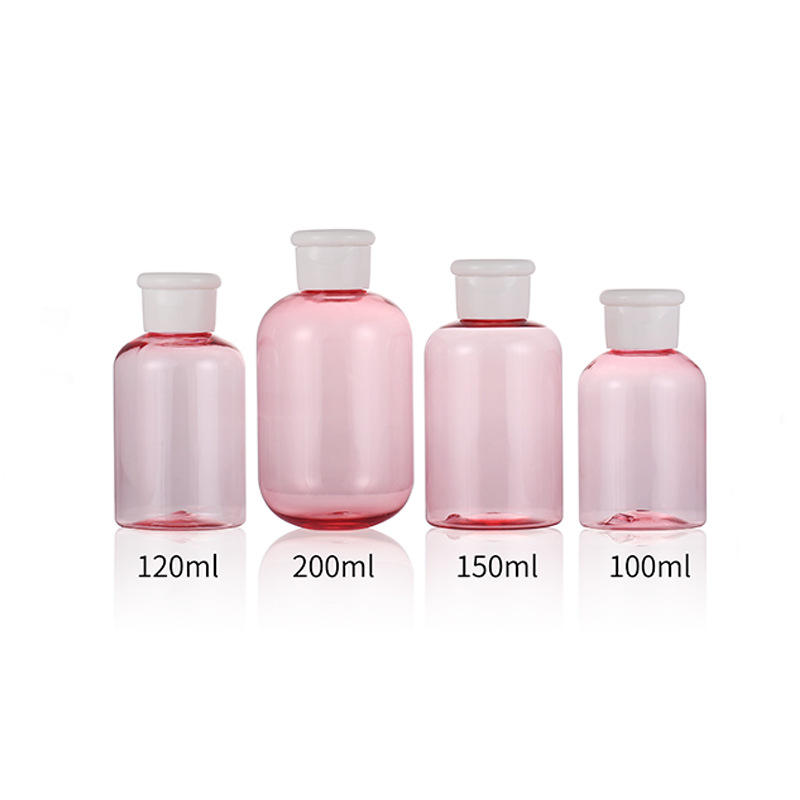 ขวดพลาสติกทรงกลมสีชมพู 150 มล. ฝาเกลียว สำหรับบรรจุภัณฑ์เครื่องสำอาง
