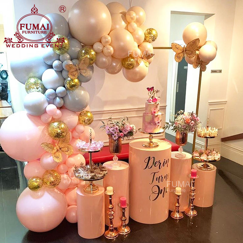 แท่นวางเค้กโลหะแท่นวางทรงกลมสีชมพูสำหรับตกแต่งงานแต่งงาน