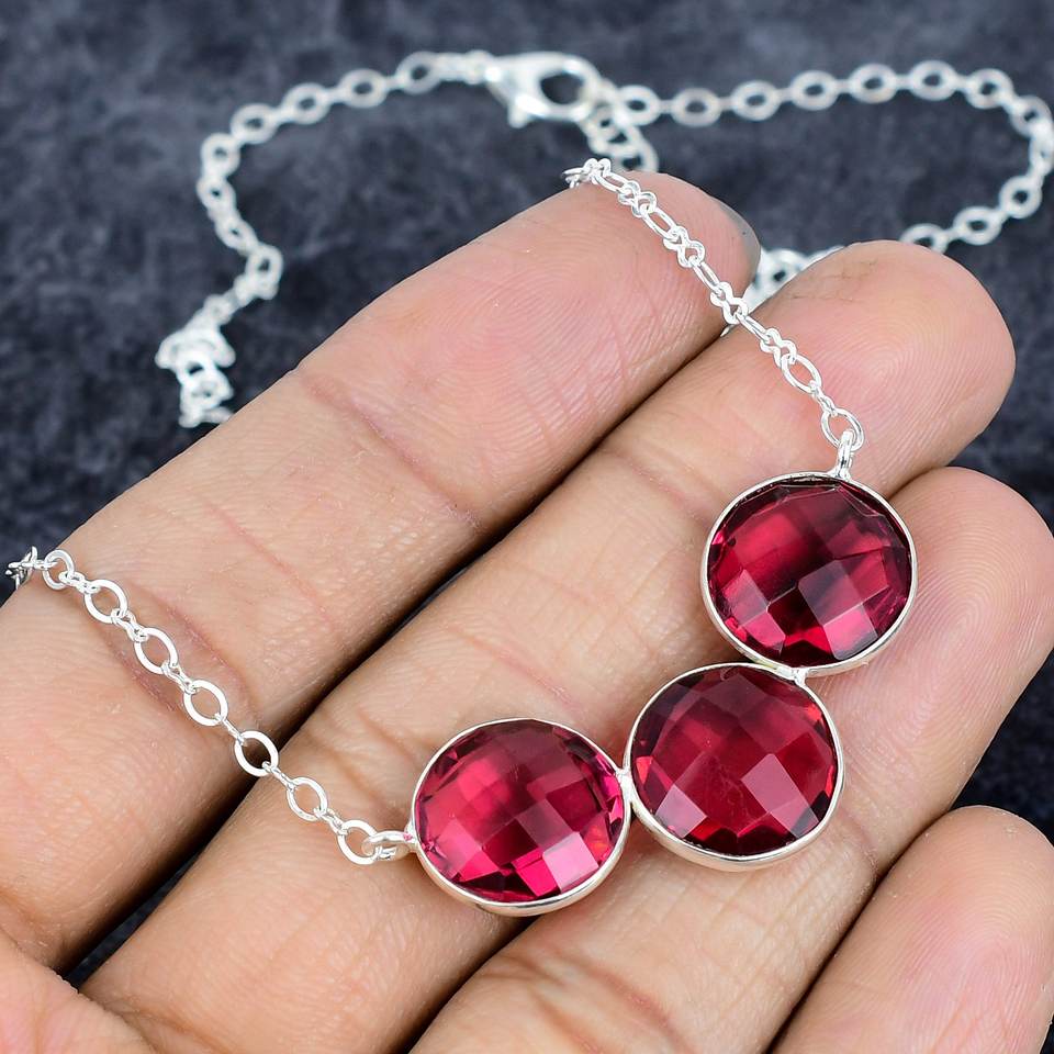 925ชุดสร้อยคอเงินแบบโซ่สำหรับผู้หญิงประดับอัญมณีสามชิ้นสีชมพูสำหรับงานหมั้นวันขอบคุณพระเจ้าไอเดียของขวัญ