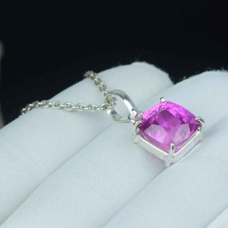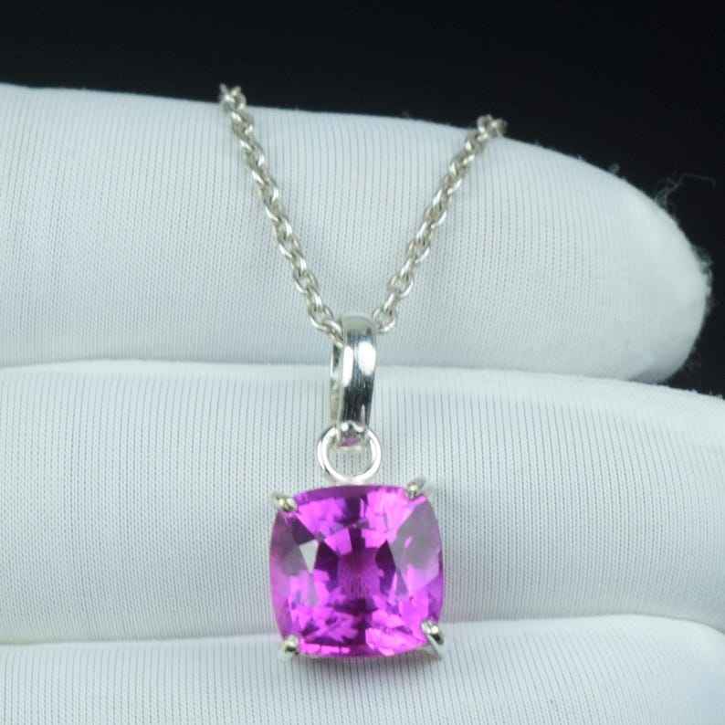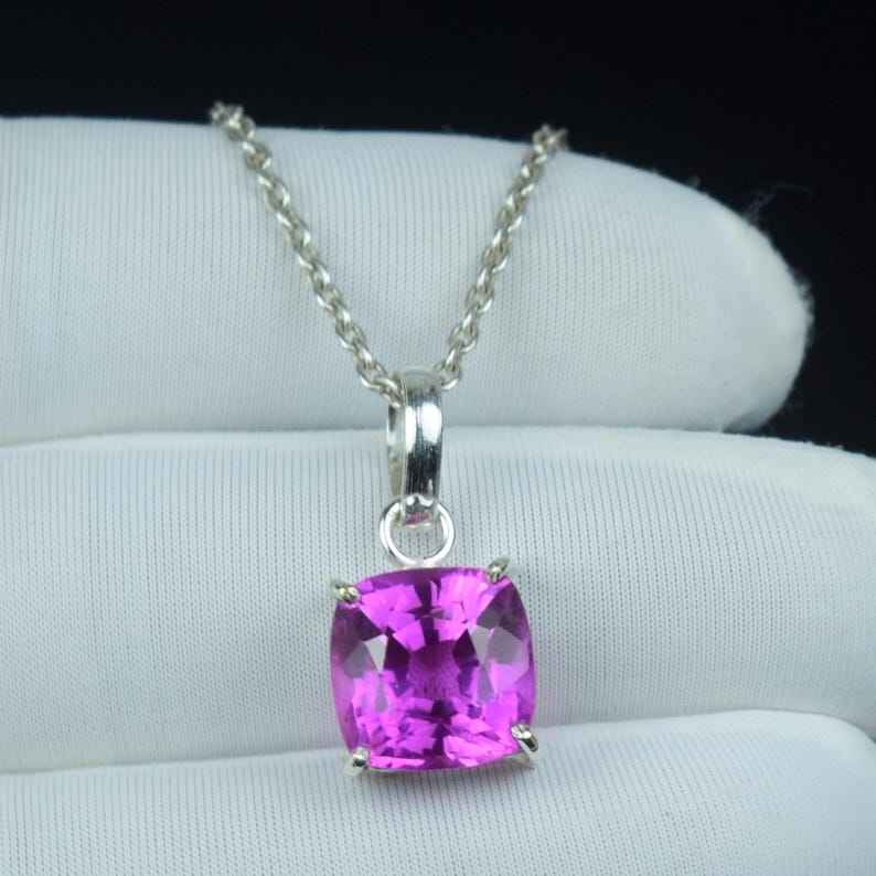 จี้แซฟไฟร์สีชมพู เงินแท้ 925 สร้อยคอพลอยประจำเดือนกันยายน ของขวัญครบรอบที่ดีที่สุด เครื่องประดับ