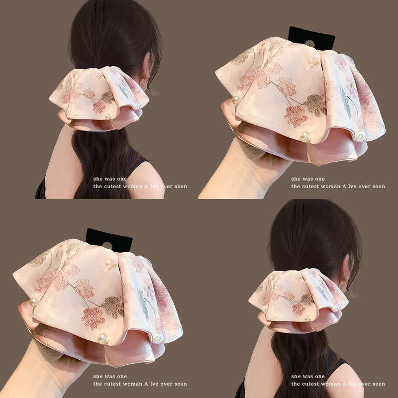 กิ๊บติดผมผ้าซาตินสีชมพูหรูหราประดับมุกและดอกไม้ สำหรับผู้หญิง ใช้ตกแต่งผมหางม้า ที่คาดผมแบบเต็มศีรษะ เครื่องประดับศีรษะ ฤดูใบไม้ผลิ 2026 วัสดุผสม