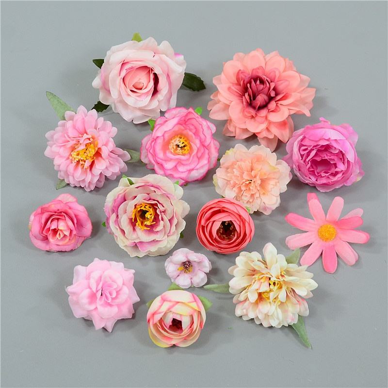 ดอกไม้ไหมสีชมพู สำหรับตกแต่งหมวกบัณฑิต งาน DIY ทำมือ วัสดุหลากหลายรูปทรงดอกไม้ ขอบนูน งานแต่งงาน