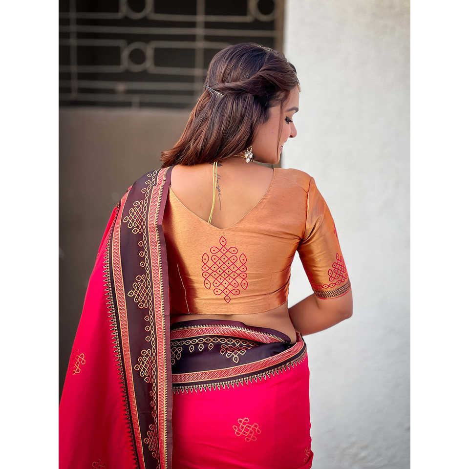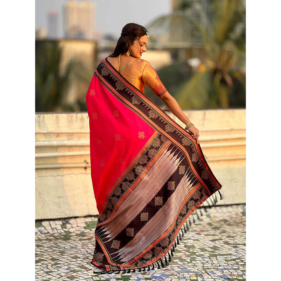 Pink Soft Silk Traditional Zari Contrast Woven Saree for Weddings by Elite Weaves 650g