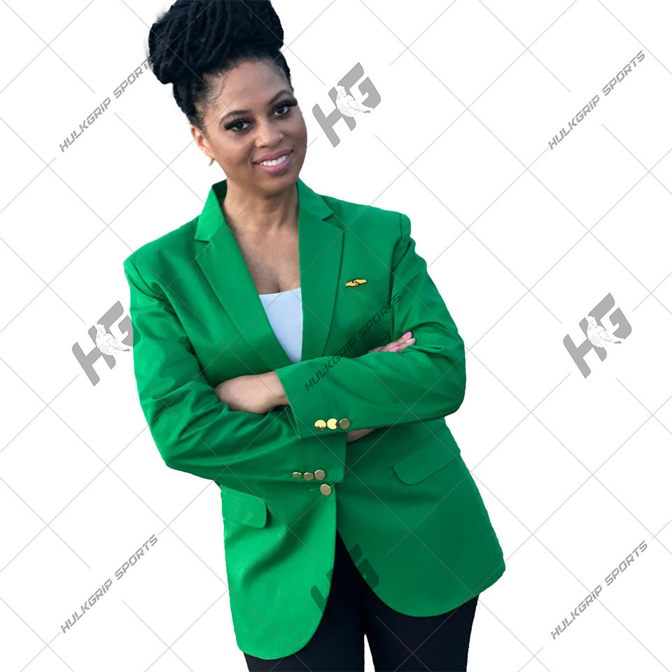 เสื้อเบลเซอร์ผู้หญิงสีชมพู ผ้าวูลเนื้อแน่น ป้องกันรอยยับ ดีไซน์หรูหรา ปักลาย 3 มิติ กระดุมเดี่ยว แต่งลายทอง คอวี ความยาวปกติ