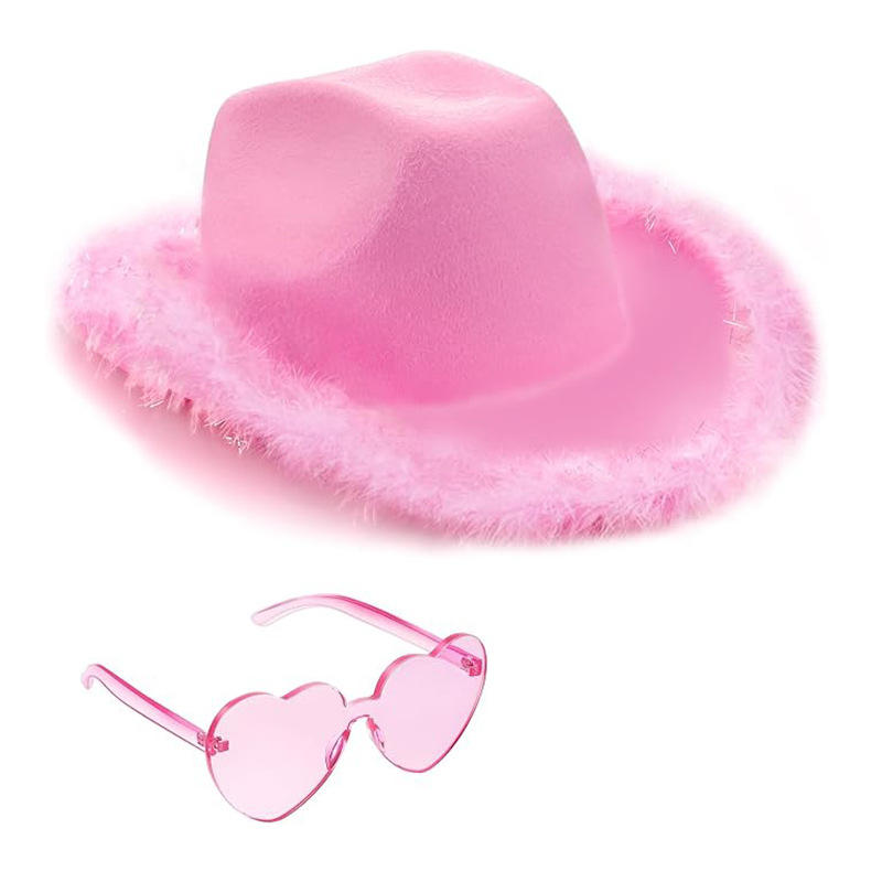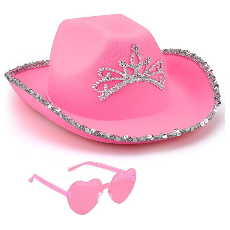 หมวกคาวเกิร์ลลายอวกาศสีชมพูพร้อมแว่นตาแบนดาน่าเมทัลลิกนีออนสดใสสำหรับผู้หญิงหมวกคาวบอยปาร์ตี้โรดีโอ