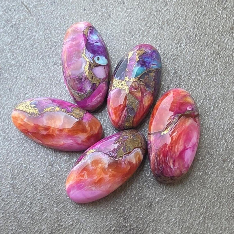 หอยนางรมสีชมพูประดับด้วยเทอร์ควอยซ์ทรงรีขนาดใหญ่แบบคาโบชอง พลอยธรรมชาติที่ผ่านการปรับขนาดแล้ว | มีจำหน่ายทุกขนาด