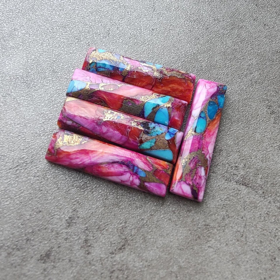 หินมุกหนามสีชมพูทรงสี่เหลี่ยมผืนผ้าเจียระไน: คุณภาพเกรด AAA+ แบบหลังแบน มีทุกขนาดสำหรับขายส่ง