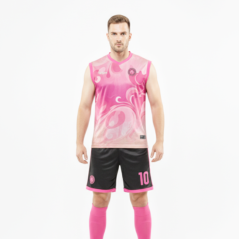เสื้อกีฬาสีชมพู ระบายอากาศได้ดี แบบไม่มีแขน แห้งเร็ว พร้อมดีไซน์และโลโก้สั่งทำพิเศษด้านหน้า