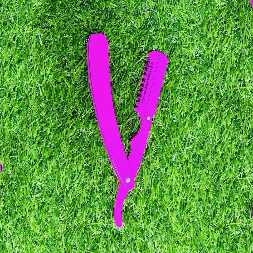 มีดโกนตัดผมสีชมพู สแตนเลสสตีล สำหรับช่างมืออาชีพ แบบล็อคสวิง พร้อมใบมีดเปลี่ยนได้ สำหรับร้านทำผม