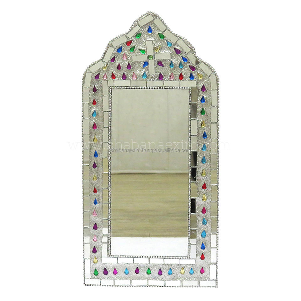 กระจกติดผนังกรอบลูกปัดหินสีชมพู รูปทรงสี่เหลี่ยมผืนผ้า สะดุดตา เหมาะสำหรับตกแต่งผนังบ้านอย่างมีศิลปะ