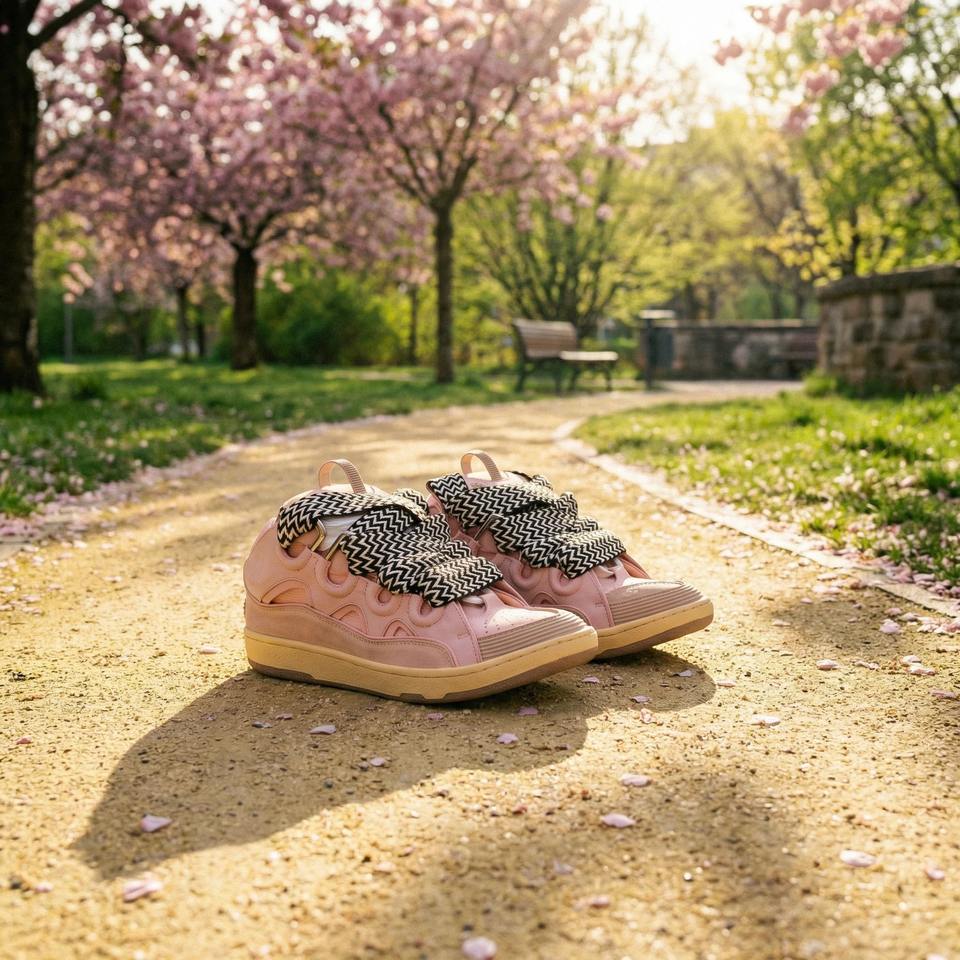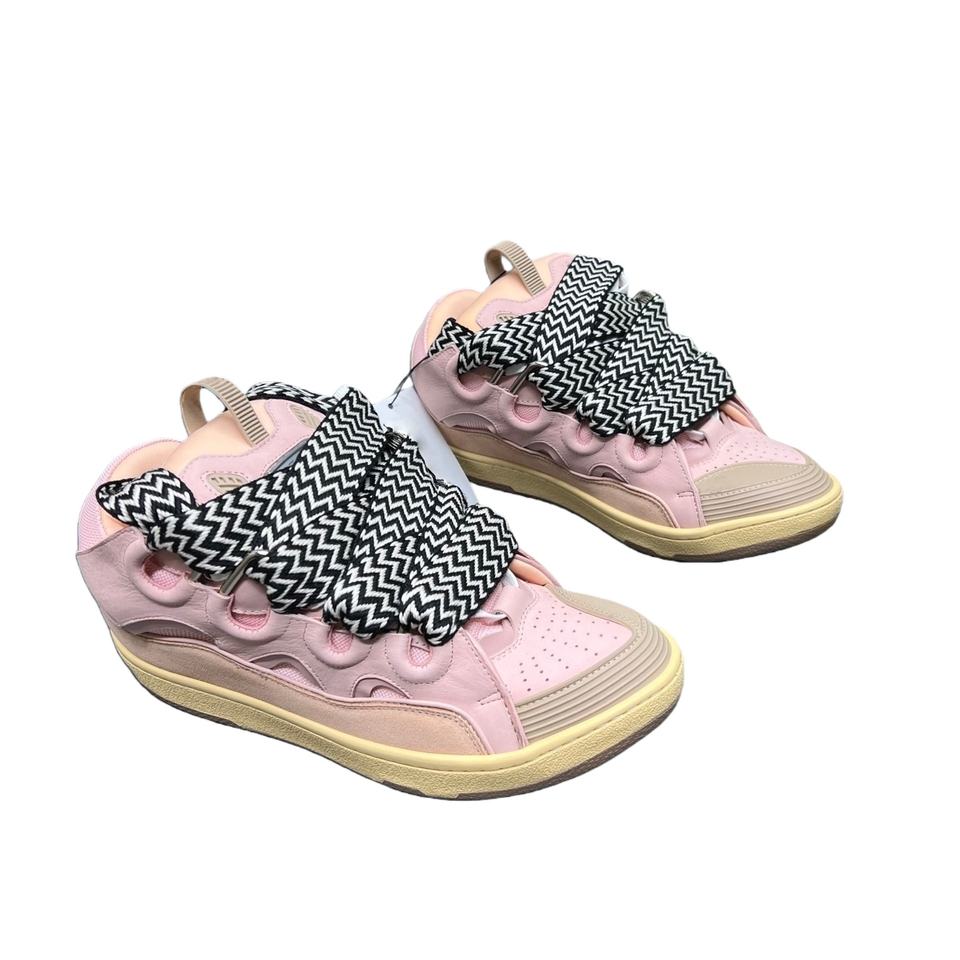 รองเท้าผ้าใบสีชมพูหนังกลับแบบสวมลำลอง มีเชือกผูก ป้องกันการลื่น ลายเชฟรอน เชือกผูกแบบหนา สำหรับผู้หญิง แฟชั่นทันสมัย สวมใส่ได้ทุกวัน