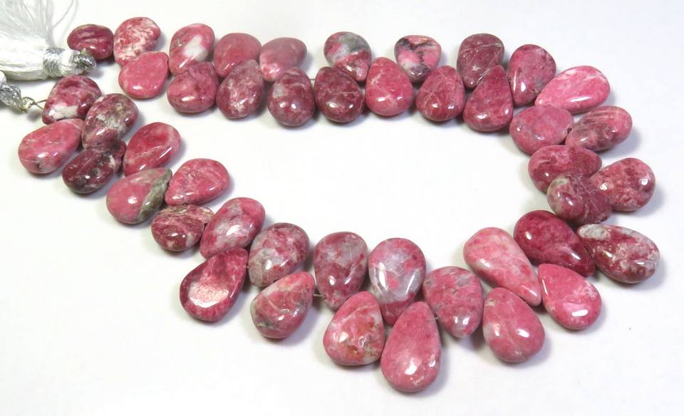 9 "เส้นลูกแพร์ thulite สีชมพูเกรดสูงธรรมชาติลูกปัดขัดเรียบอัญมณีหลวมสำหรับเครื่องประดับ9-15มม. ขนาด