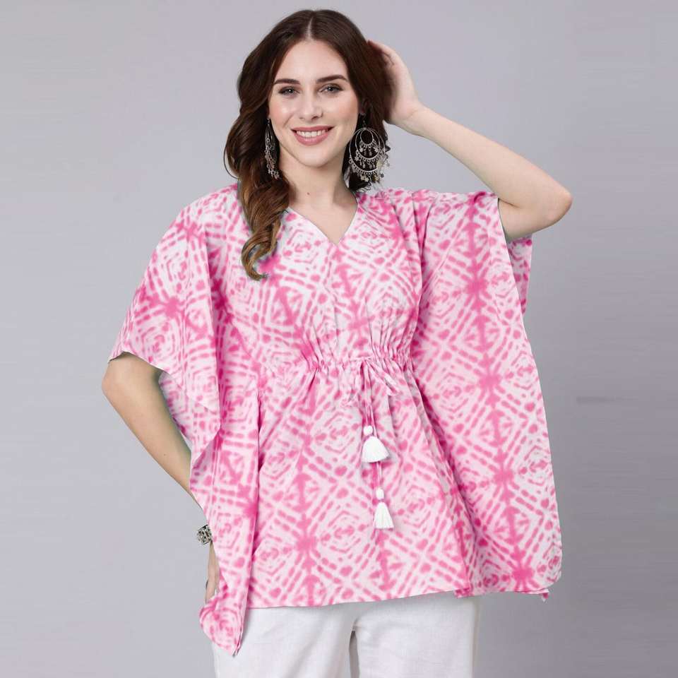 เดรสผ้าคอตตอนพิมพ์ลายมัดย้อมสีชมพู, เดรสคาฟตันความยาวถึงพื้นออกแบบได้ตามต้องการ