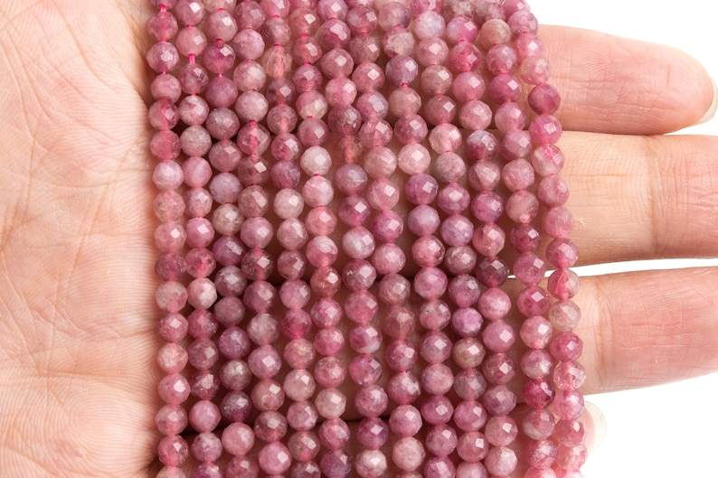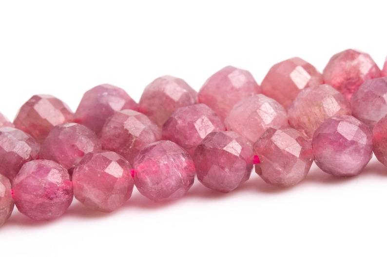 ลูกปัดทัวร์มาลีนสีชมพู บราซิล แท้ พลอยธรรมชาติ ร้อยเป็นเส้น ลูกปัดทรงกลมเหลี่ยมเพชรพลอย ขายส่งจำนวนมาก