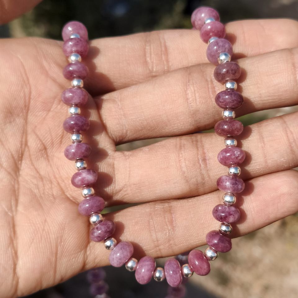 สร้อยคอพลอยทัวร์มาลีนสีชมพู 8 มม. ทรงรอนเดลล์ เครื่องประดับพลอยประจำเดือนตุลาคม ของขวัญแต่งงาน พลอยธรรมชาติสีชมพู สร้อยคอแบบโชคเกอร์ โรแมนติก
