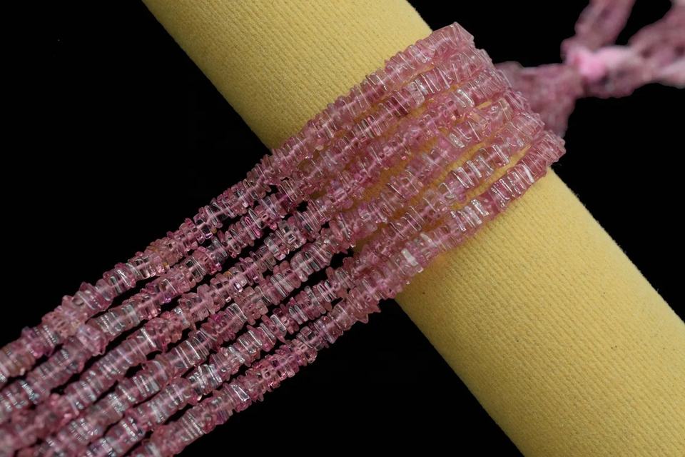 ลูกปัดพลอยสามสีชมพูเรียบ Heishi ขนาด5-5.5มม. ลูกปัดสี่เหลี่ยมทัวร์มาลีน