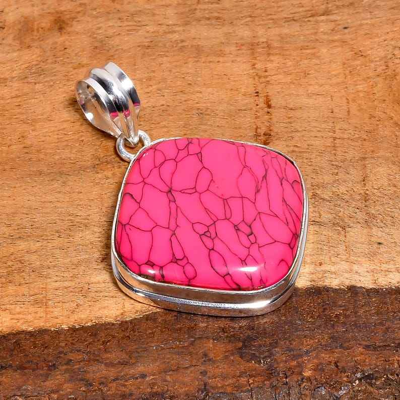 จี้ห้อยคอหินเทอร์ควอยซ์สีชมพู ประกายระยิบระยับ