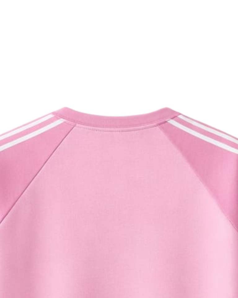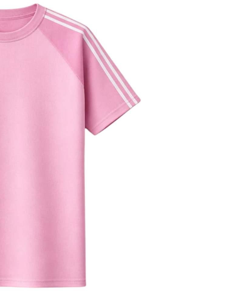 เสื้อยืดแขนราแกลนสีชมพูขาวผู้ชายลำลองฤดูร้อนคอกลมลายทางไหล่ระบายอากาศได้ดีผ้าฝ้ายผสมนุ่มสบายสวมใส่สบาย