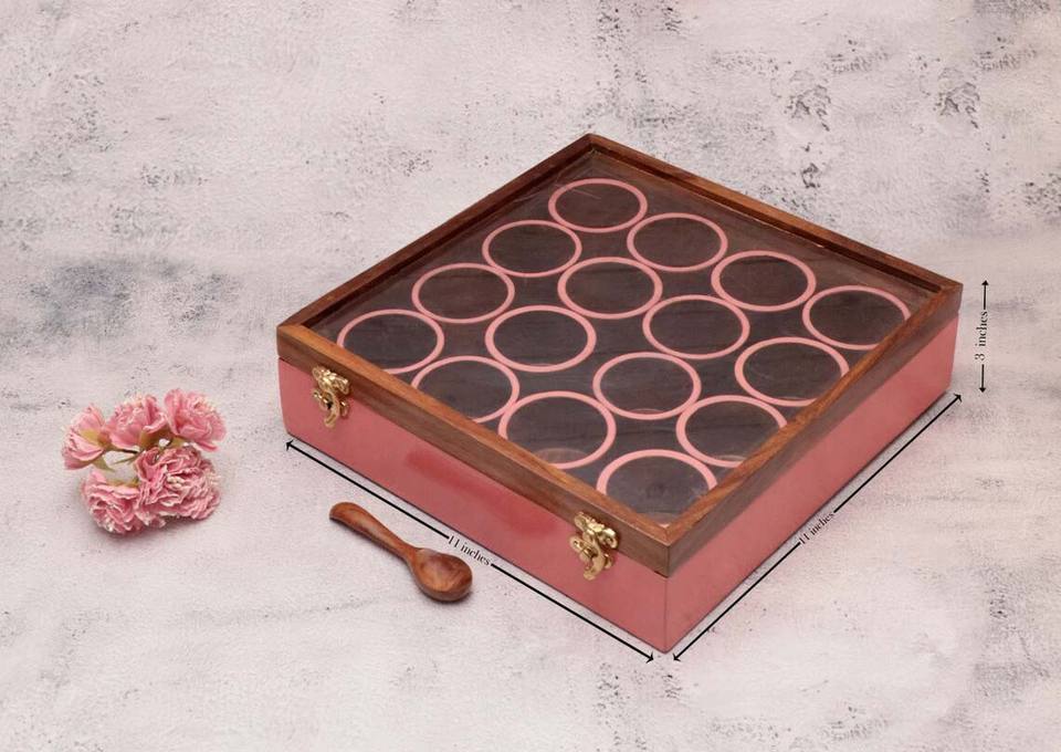 กล่องเครื่องเทศไม้สีชมพูภาชนะภาชนะบรรจุในห้องครัวผงเครื่องเทศและสมุนไพรสำหรับบ้านและร้านอาหารอุปกรณ์ครัว