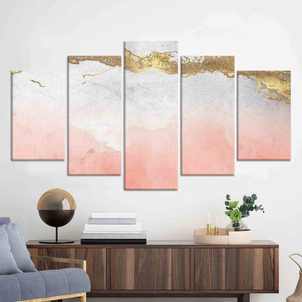 ผ้าใบศิลปะลายหินอ่อนสีชมพูและสีทอง: ของตกแต่งผนังกระจกสมัยใหม่ ชุดผ้าใบขนาด 5 เมตร