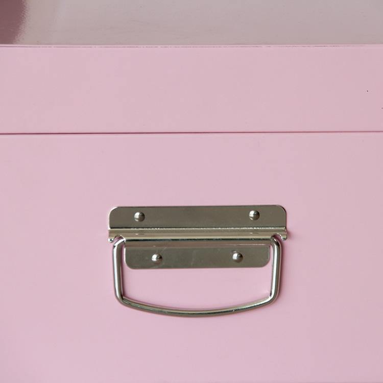 กล่องเก็บของโลหะสีชมพูและสีฟ้าอ่อน พร้อมอุปกรณ์ล็อคสีเงิน
