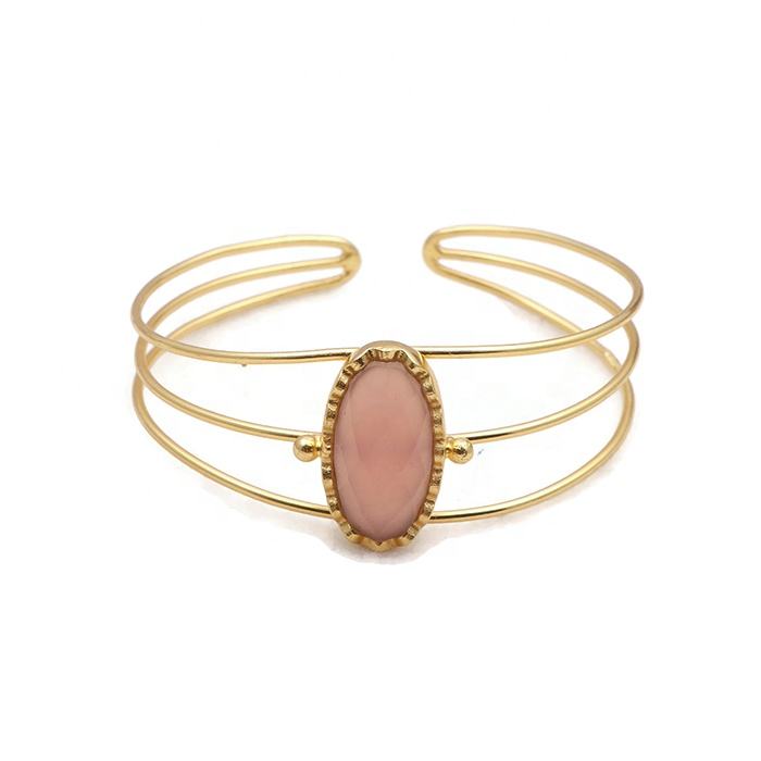 สร้อยข้อมือพลอยสีชมพูลายหินขาวอ่อนเครื่องประดับออกแบบสร้อยข้อมือกําไลสามวงเครื่องประดับสร้อยข้อมือกําไลข้อมือสีชมพูชุบทอง