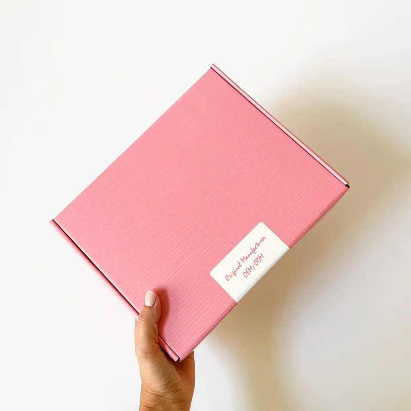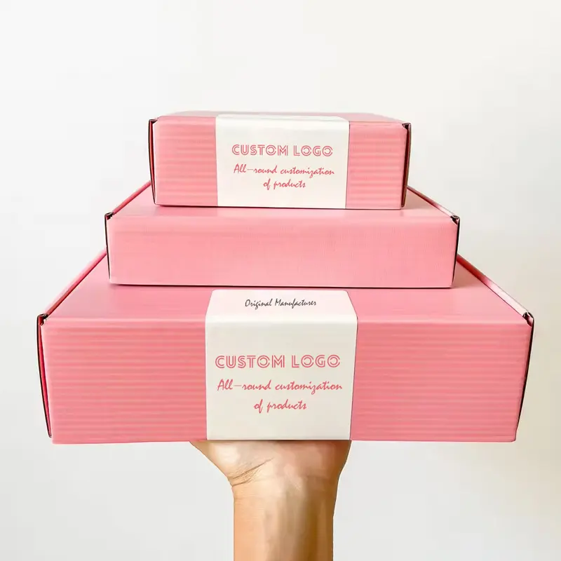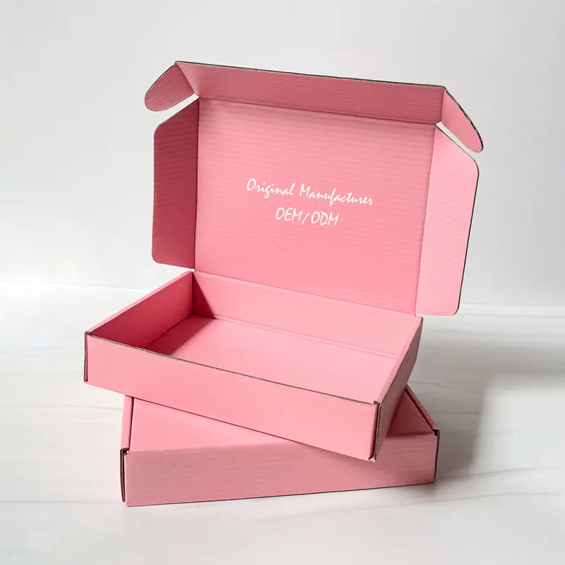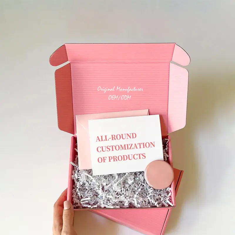 กล่องเครื่องสำอางสีชมพู กล่องของขวัญกระดาษลูกฟูกพับได้ สามารถปรับแต่งได้ตามความต้องการ