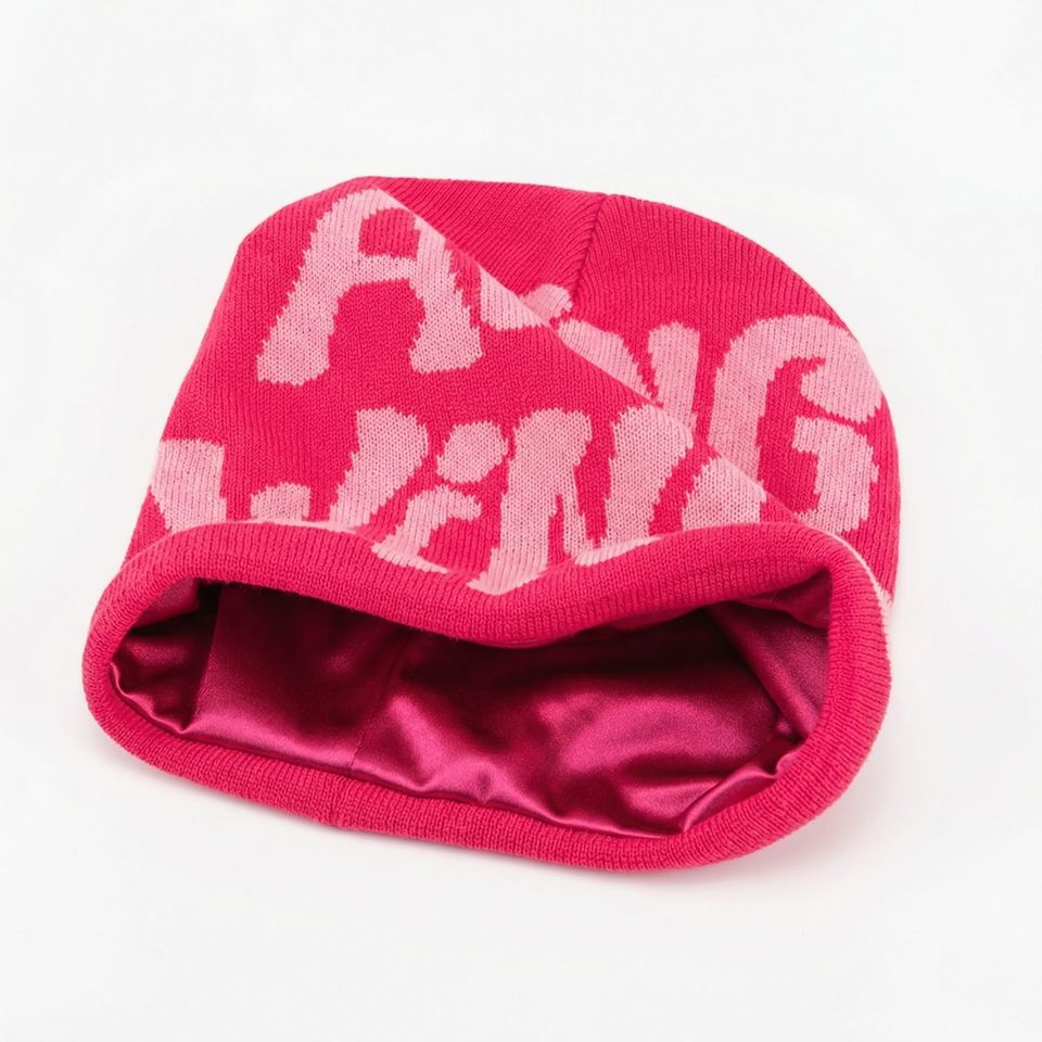 หมวกบีนนี่ถักไหมพรมสีชมพูสำหรับฤดูหนาว ลายกราฟิกโดดเด่น ผ้าเนื้อนุ่มอุ่น สวมใส่สบาย ระบายอากาศได้ดี สไตล์สตรีทแวร์สำหรับทุกเพศ