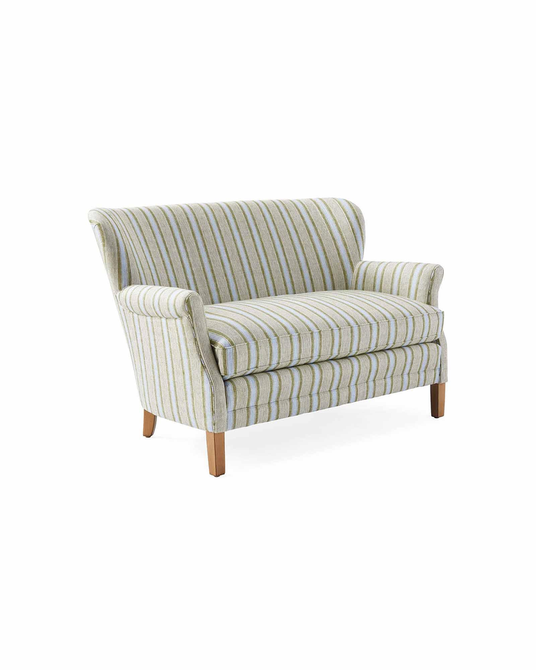 โซฟาหุ้มเบาะลาย Pinstripe ที่มีขาไม้สัมผัส