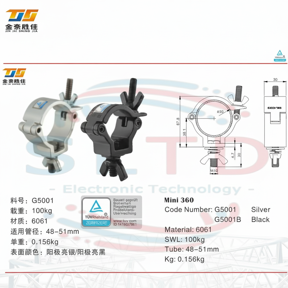 ตัวหนีบจับท่อแบบตะขอ อลูมิเนียมอัลลอย สีเงิน สำหรับไฟเวที มินิ 360 QR