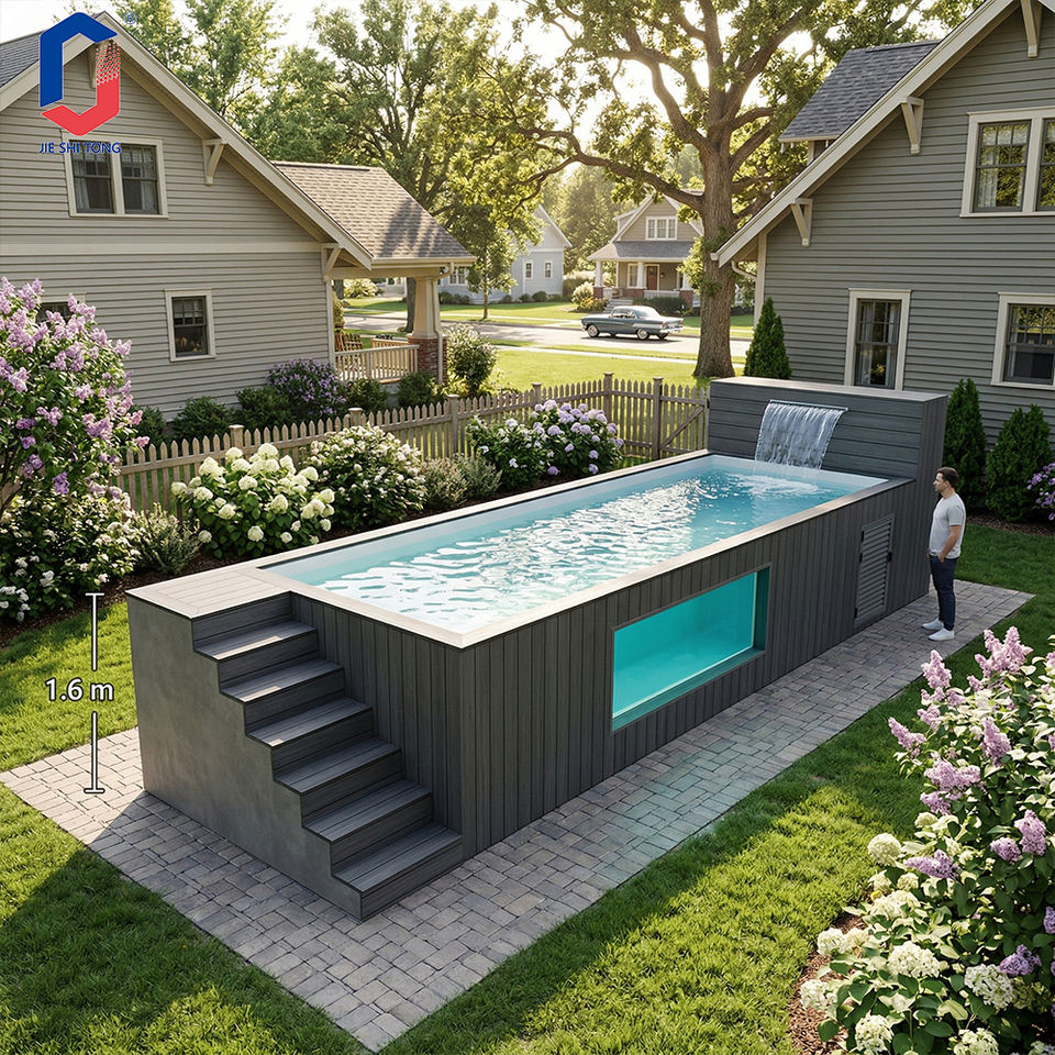 สระว่ายน้ำสำเร็จรูปแบบตู้คอนเทนเนอร์ ทนทาน ตั้งบนพื้นดิน ทำจากไฟเบอร์กลาส เหมาะสำหรับสวน แคมป์ปิ้ง และพักผ่อน