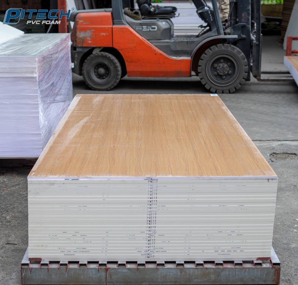 Pitech บอร์ดโฟมลามิเนตพีวีซีคุณภาพสูงเฟอร์นิเจอร์ที่ทนทานแผ่นพลาสติกพิมพ์ลายเนื้อไม้แปรรูปจากเวียดนาม