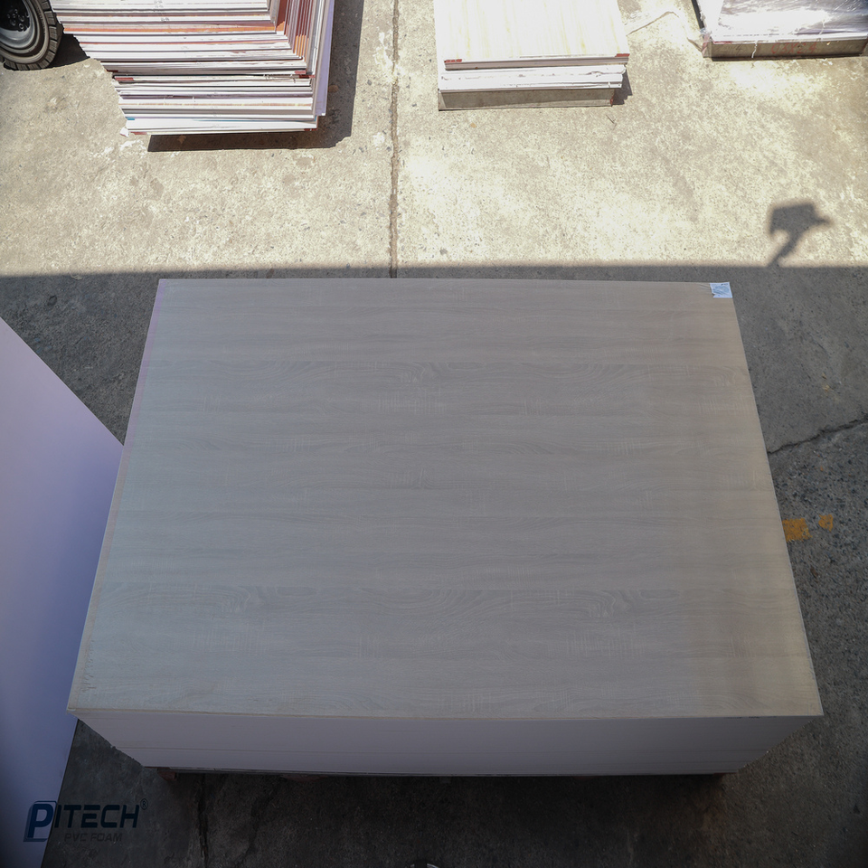 Pitech Laminated PVC Foam Board Light Wood Grain Plastic Panels Printed Advertising for Bathroom Cabinets Vietnam Cut