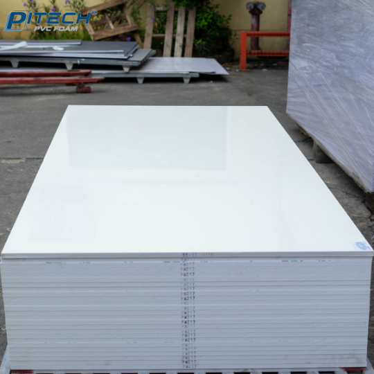 Pitech แผ่นโฟมพีวีซีสีขาวทนทานสำหรับการผลิตเฟอร์นิเจอร์แผ่นพลาสติกแข็งพร้อมฟิล์มป้องกันตัดง่าย