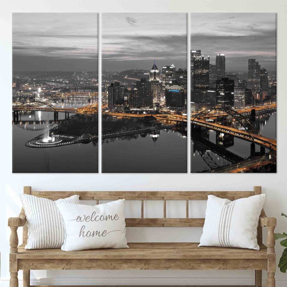 ภาพพิมพ์บนผ้าใบวิวกลางคืนของพิตส์เบิร์ก - ภาพพิมพ์ 3 แผ่นแบบห่อหุ้ม, ภาพพิมพ์ 3P แบบห่อหุ้ม