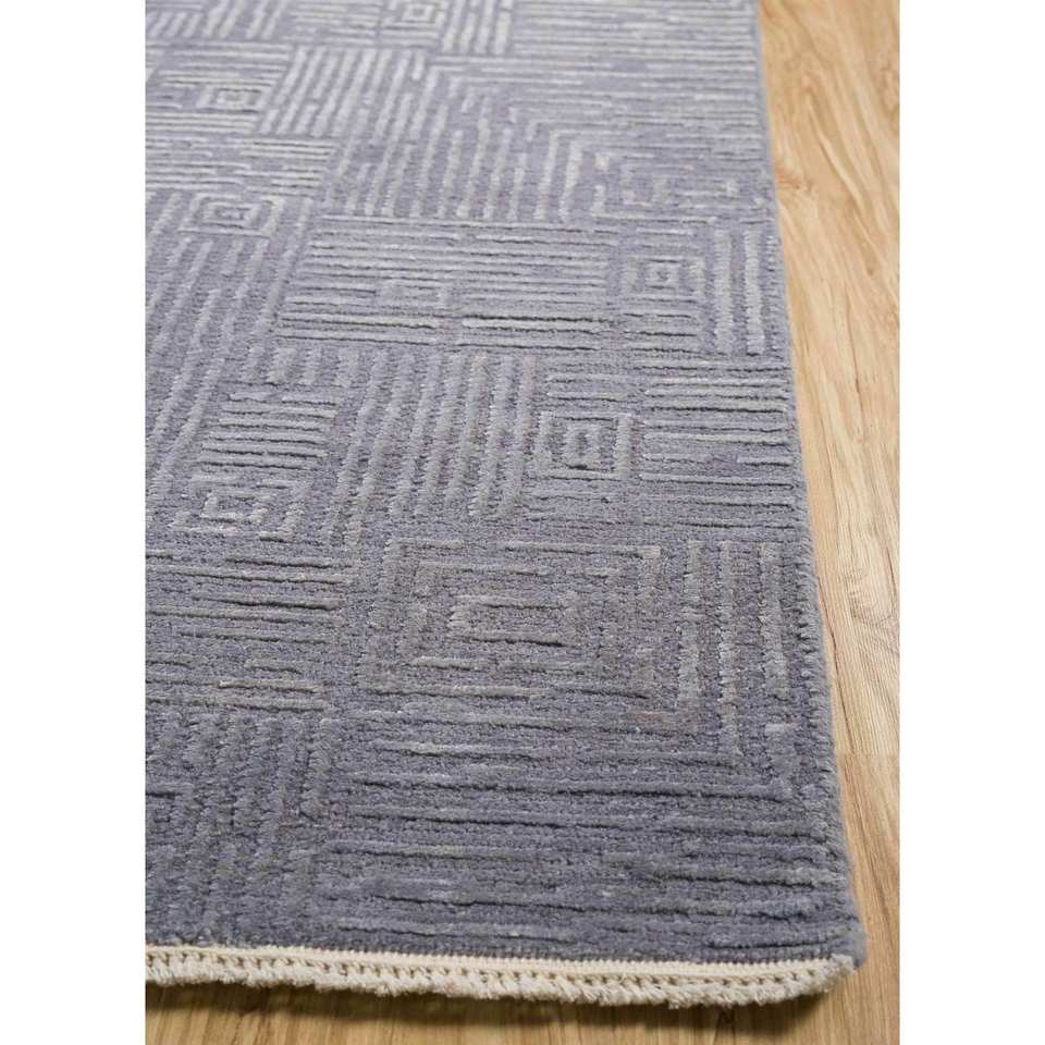 พรมไหมพรมถักมือ Piws-08 สีน้ำเงินลายเรขาคณิต รูปทรงสี่เหลี่ยมผืนผ้า ทำจากฝ้ายออร์แกนิก สำหรับห้องนั่งเล่น พรมปูพื้นจากเส้นใยปอกระเจา