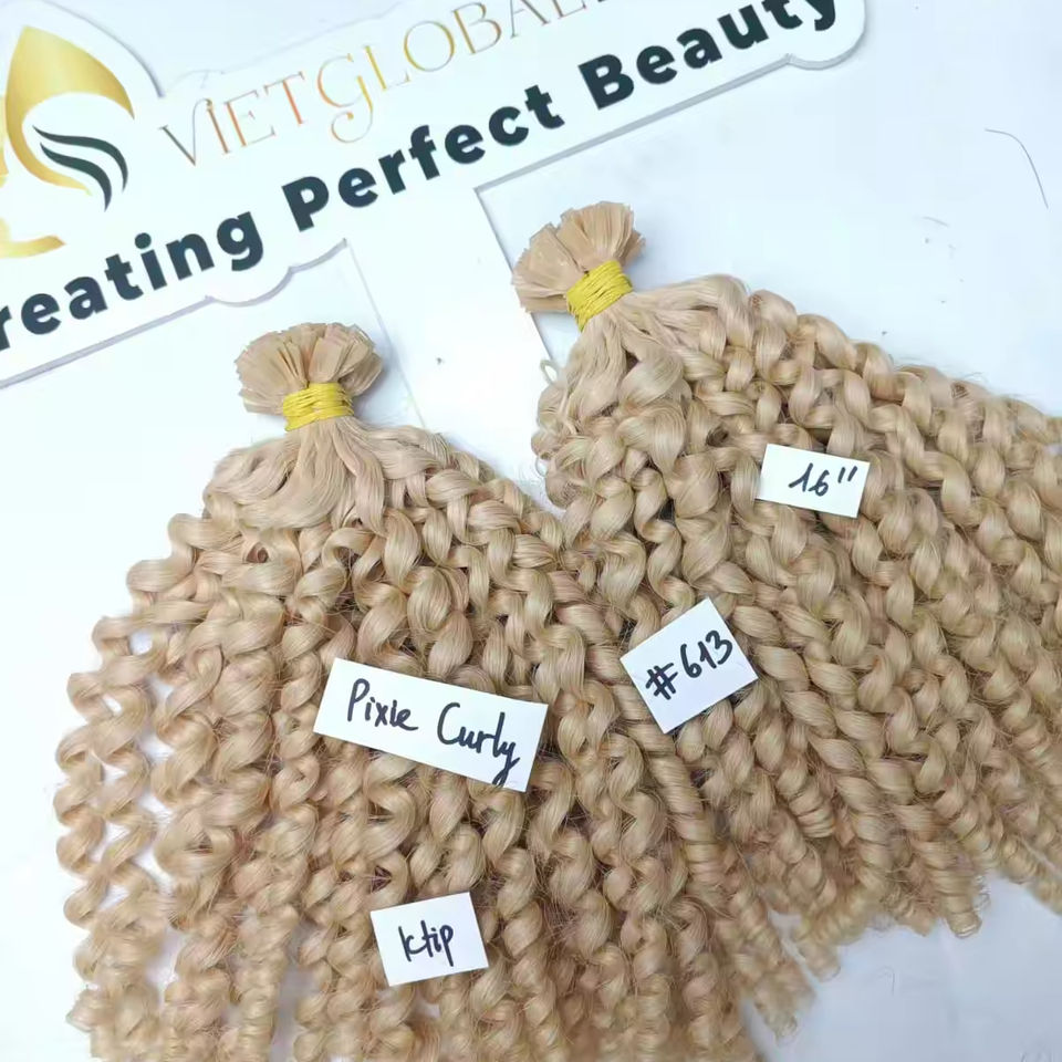 Pixie Curly Cuticle Aligned Raw Vietnamese Hair Double Drawn Ktip Human Hair Bundles