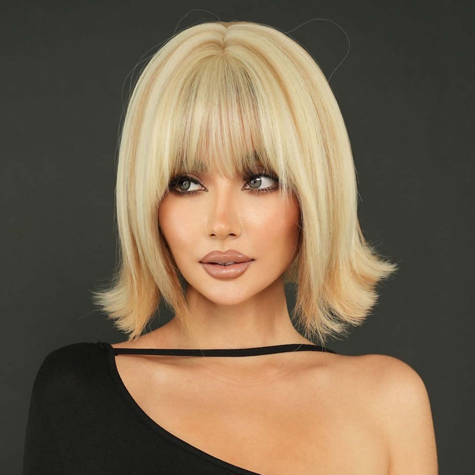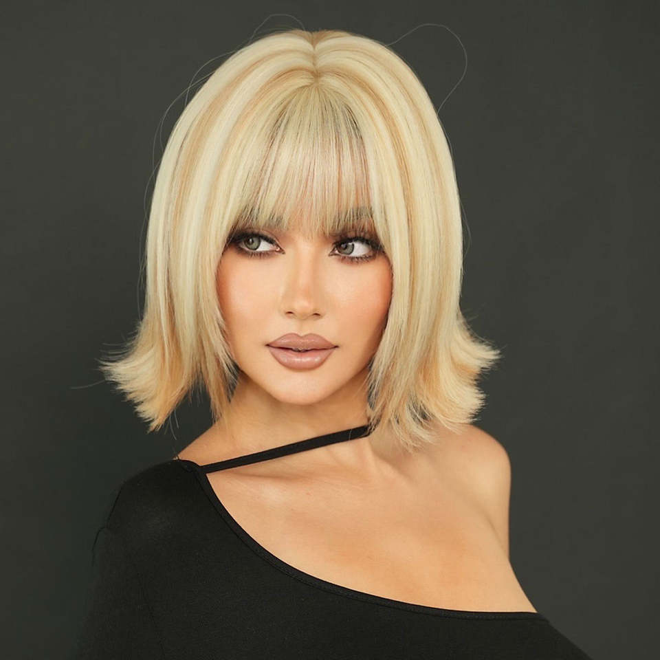 วิกผมทรงพิกซี่คัท ผมยาว บ๊อบน่ารัก สีบลอนด์ แบบมีหน้าม้า ผมหยักเป็นชั้นๆ ขนาด 12 นิ้ว วิกผมผู้หญิง ขายส่ง สีบลอนด์ 613 วิกผมสำหรับฮาโลวีน
