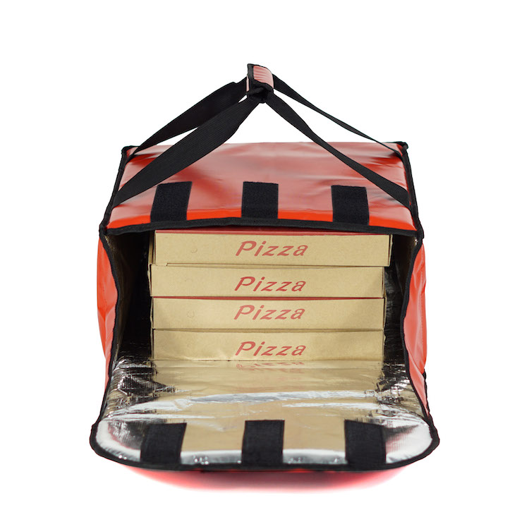 กระเป๋าส่งพิซซ่า ดีไซน์คลาสสิก กล่องพิซซ่าทนทาน กระเป๋าเก็บความร้อนสีแดงสำหรับส่งอาหาร