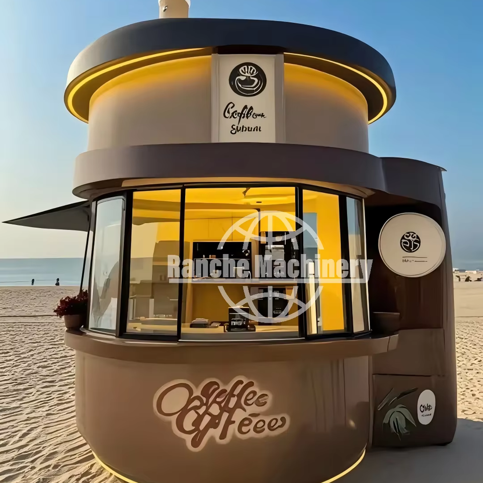 รถพ่วงขายอาหารชั้นนำแบบกลมสำหรับร้านพิซซ่าขายในตลาดแผงลอย