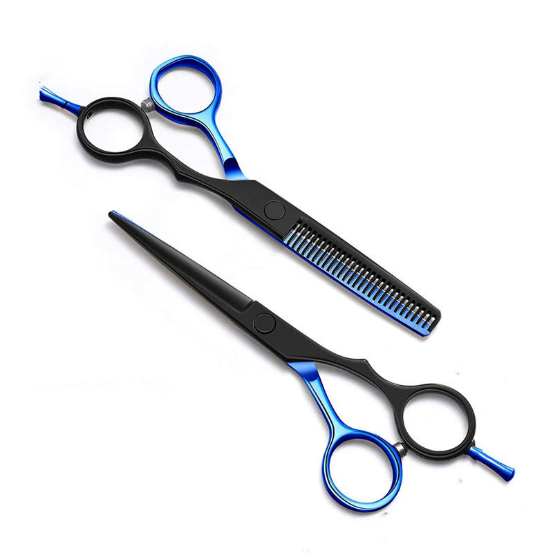 กรรไกรตัดผม Pk ขนาด 5.5 นิ้ว กรรไกรซอยผม สีดำ-น้ำเงิน สำหรับคนถนัดขวา ใช้ในร้านเสริมสวย ใบมีดมาตรฐาน ผลิตที่ซูโจว