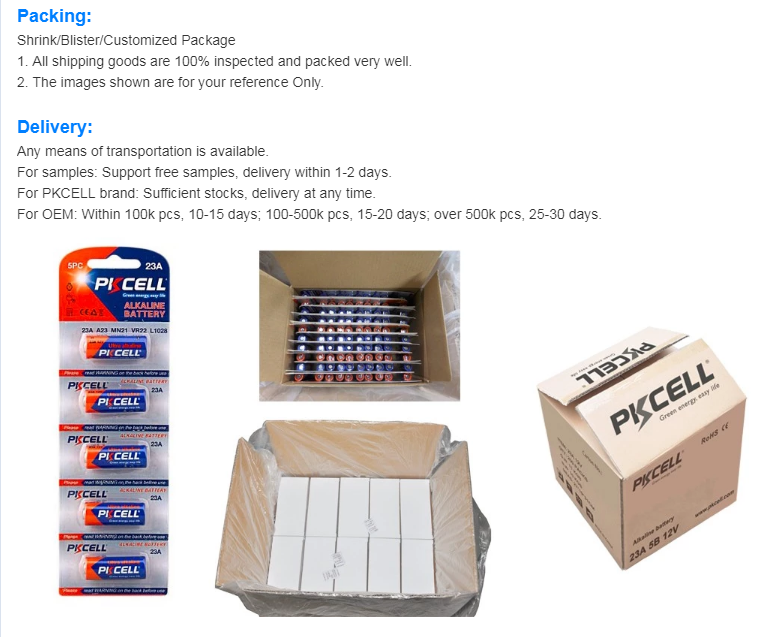 Pkcell คุณภาพสูง a23 l1028 23ae 23a 12v แบตเตอรี่อัลคาไลน์สําหรับ doorbell