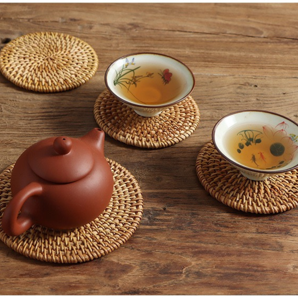 ถาดรองจานสำหรับจัดงานแต่งงานทำด้วยมือของเวียดนามแผ่นไม้ไผ่สำหรับตกแต่งบนโต๊ะอาหาร